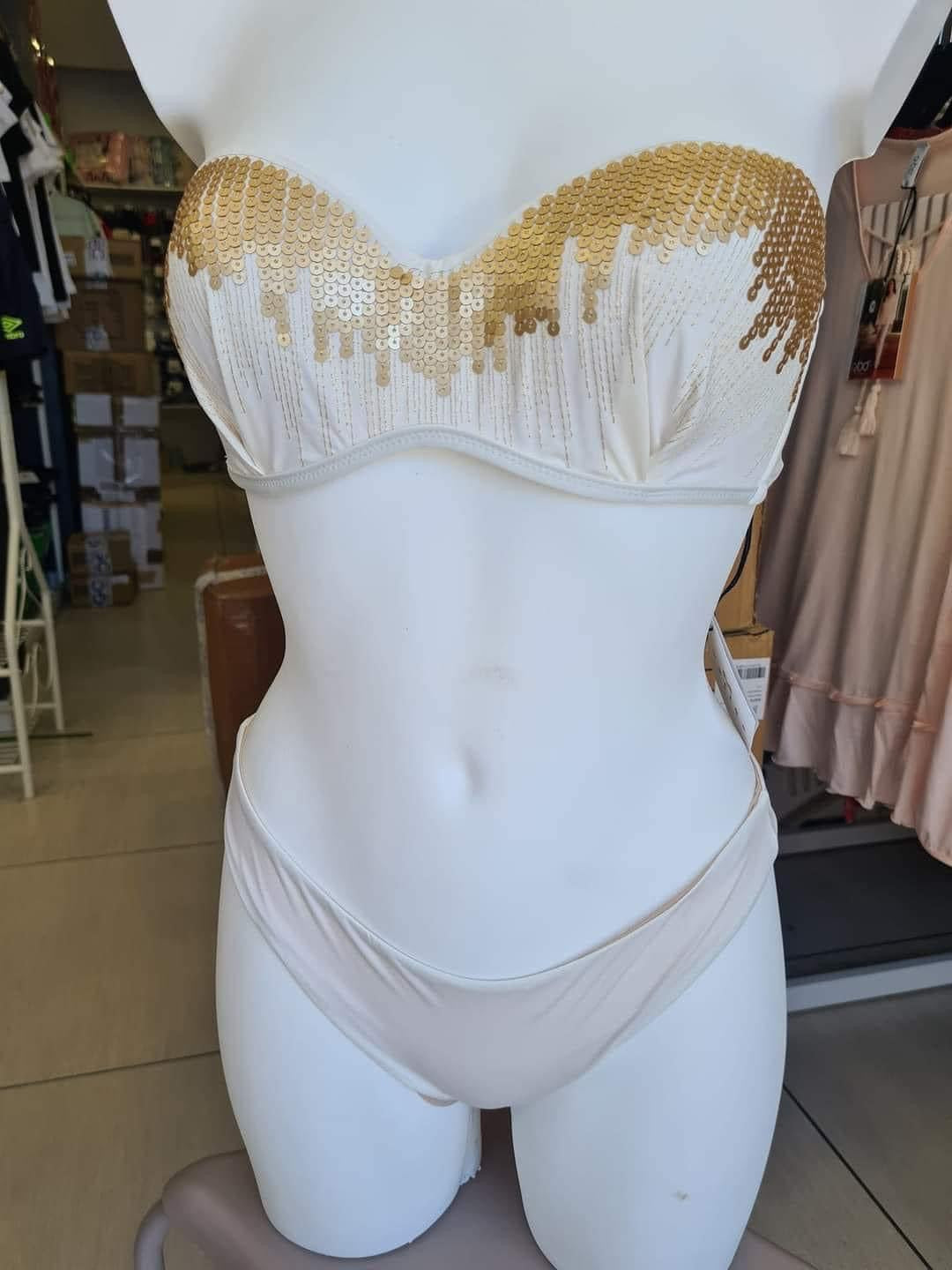 Costume modello fascia con ferretto e spalline staccabili, dettagli in paillettes coordinabile con brasiliano (prendere...