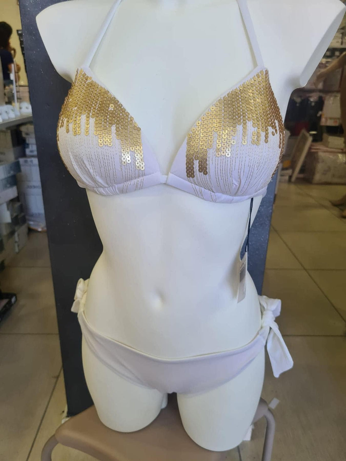 Costume triangolo imbottito con dettagli in paillettes coordinabile con slip laccetti e/o brasiliano (prendere da...
