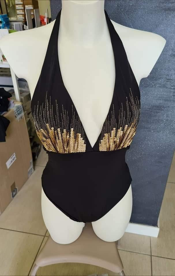 Costume intero modello triangolo sfoderato, dettagli in paillettes