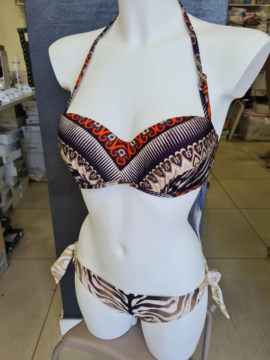 Costume 2 pezzi, reggiseno triangolo con ferretto e senza imbottitura, slip vita alta regolabile