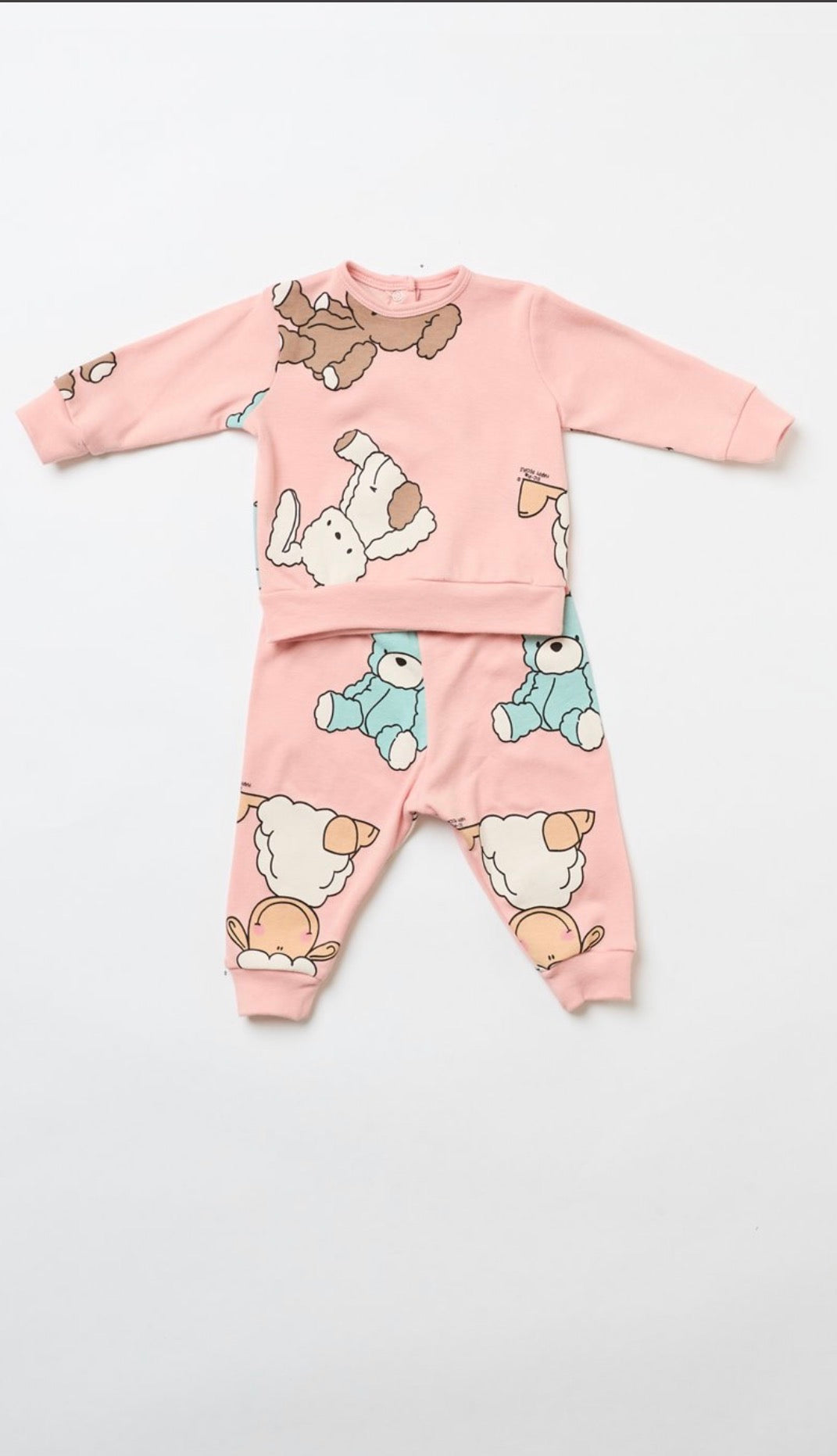 Pigiama bimbo in caldo cotone con polsini e pantaloni fantasia