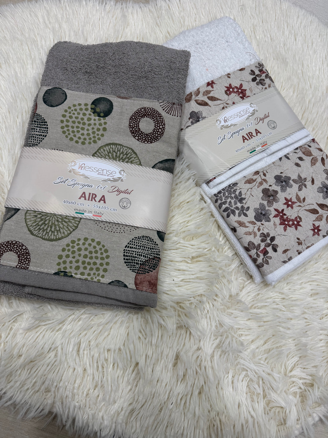 Set 4 pezzi lavette in spugna idrofila con cestino in feltro lavorato