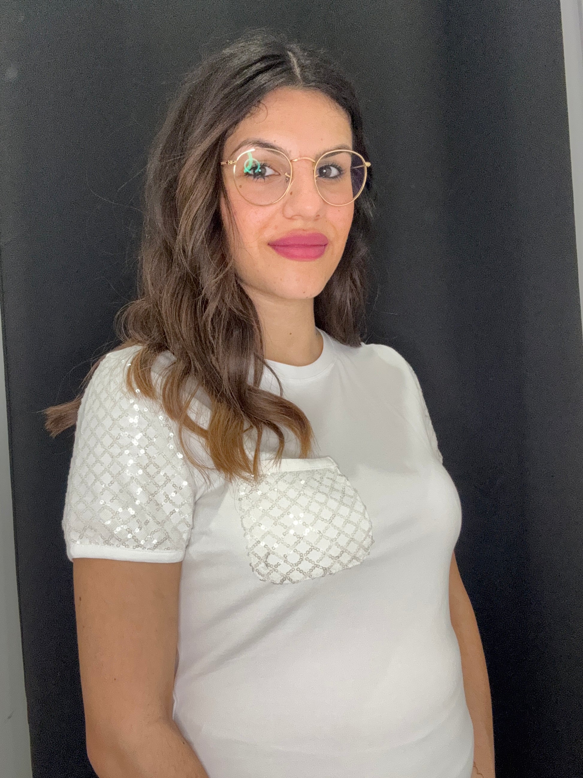 MIMÌ MUÀ t-shirt con taschino e maniche paillettes