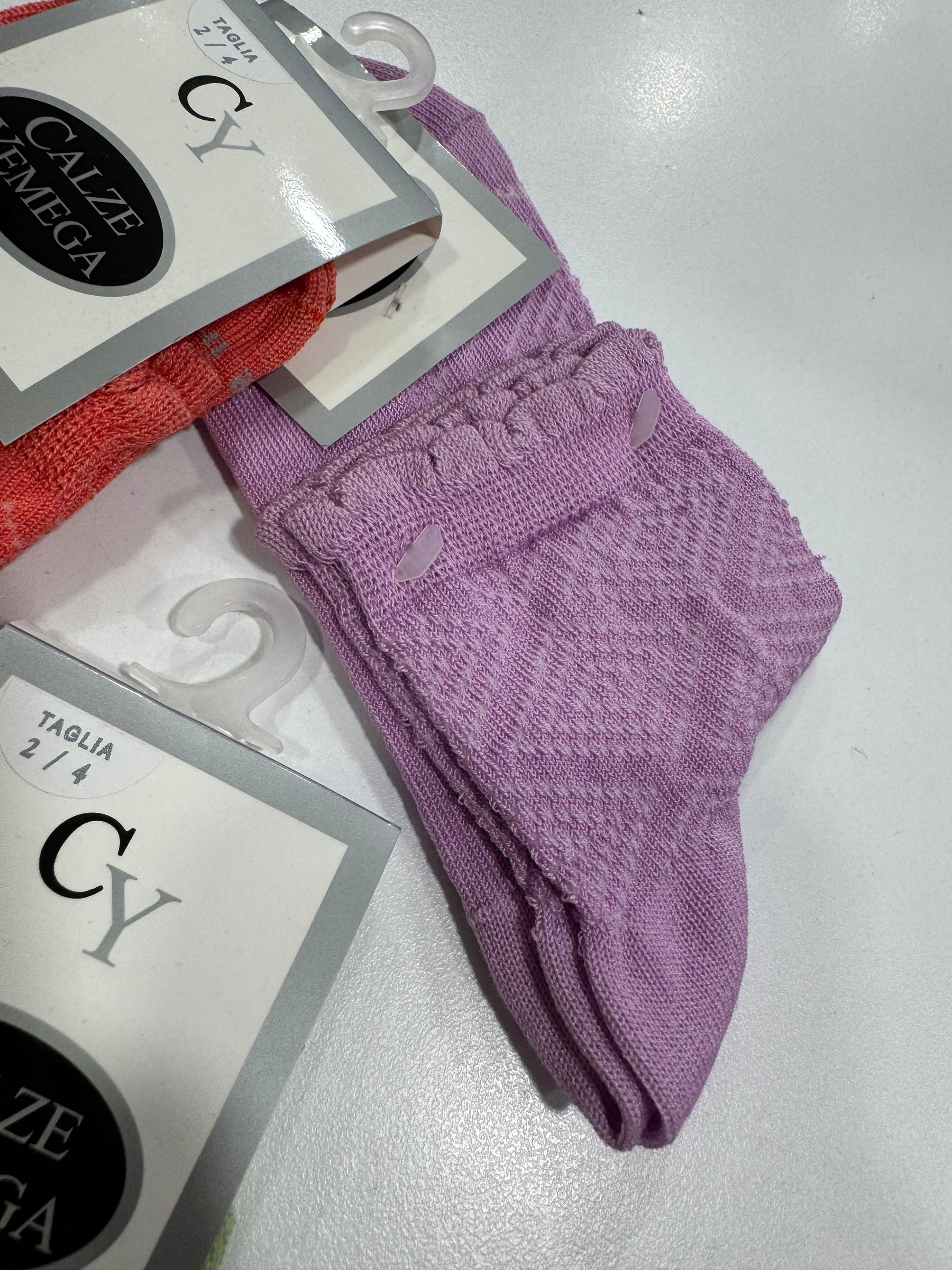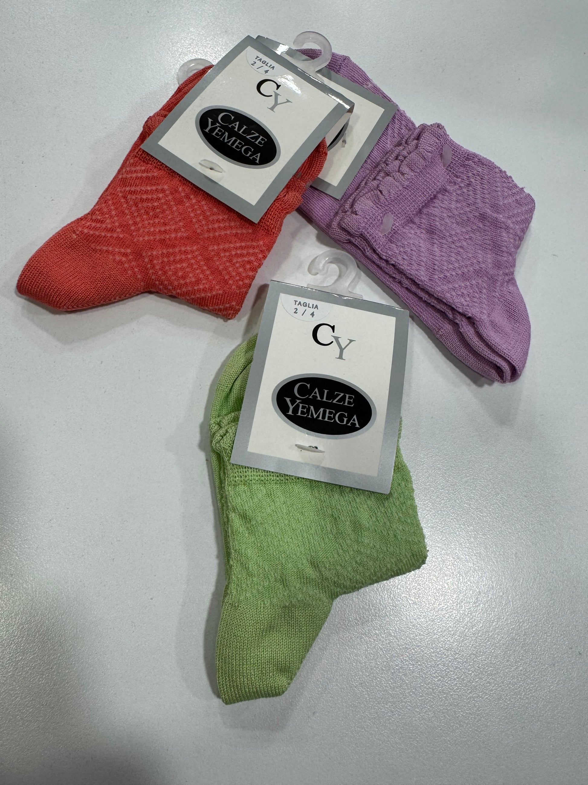 Calza da bimba in filo di Scozia makò elasticizzato moda traforato rombi, polsino francese,calza rimagliata