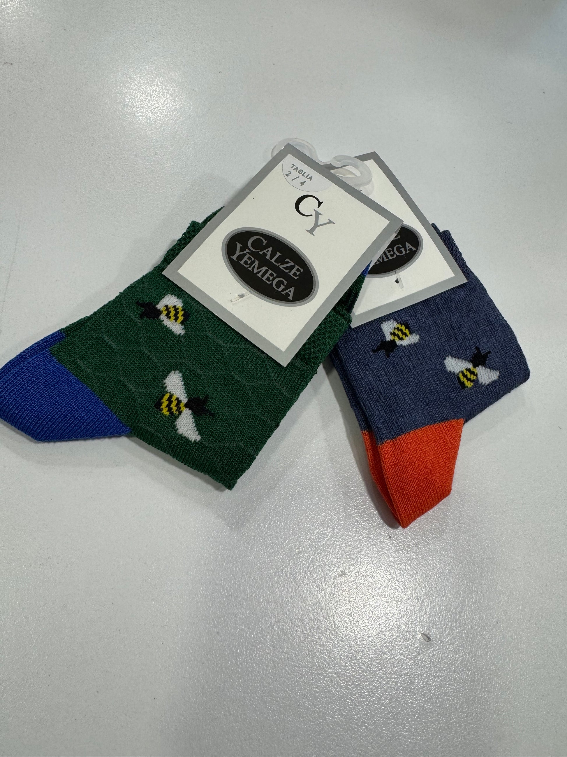 Calza da bimbo in filo di Scozia makò elasticizzato, fantasia ape, polsino francese, calza rimagliata