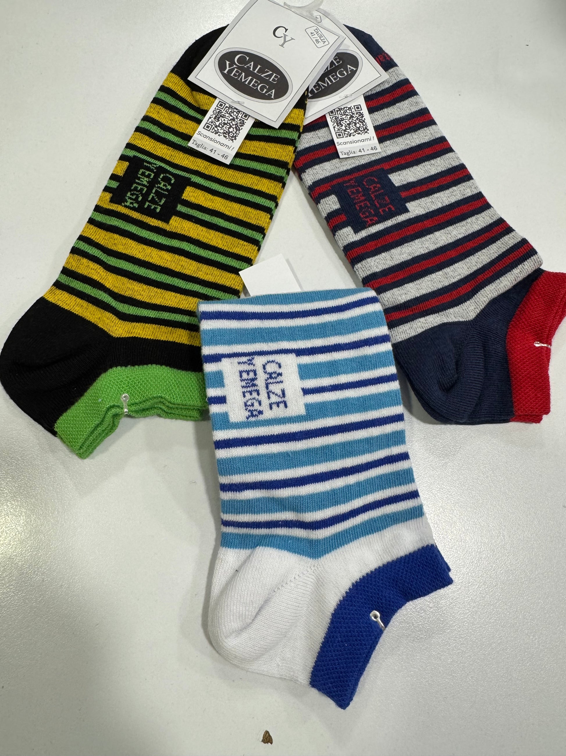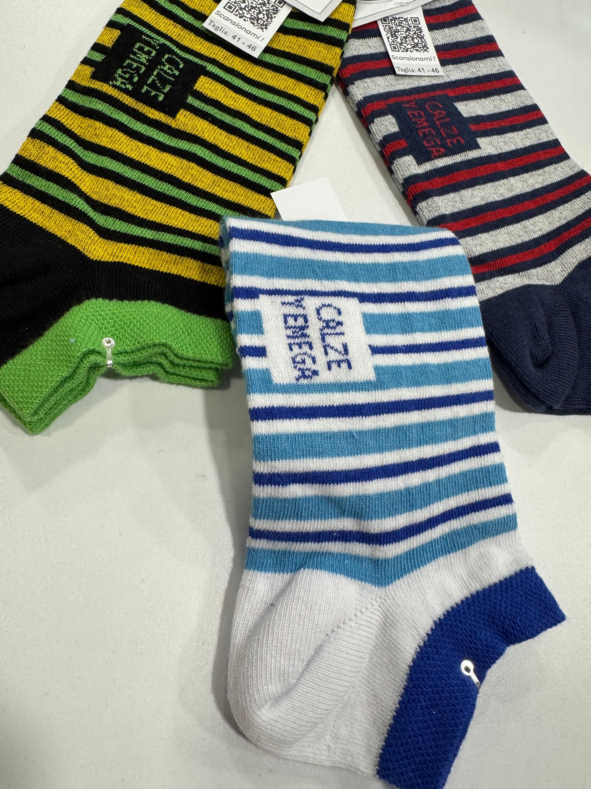 Calza fantasmino unisex in cotone elasticizzato rasato, fantasia rigato, calza rimagliata